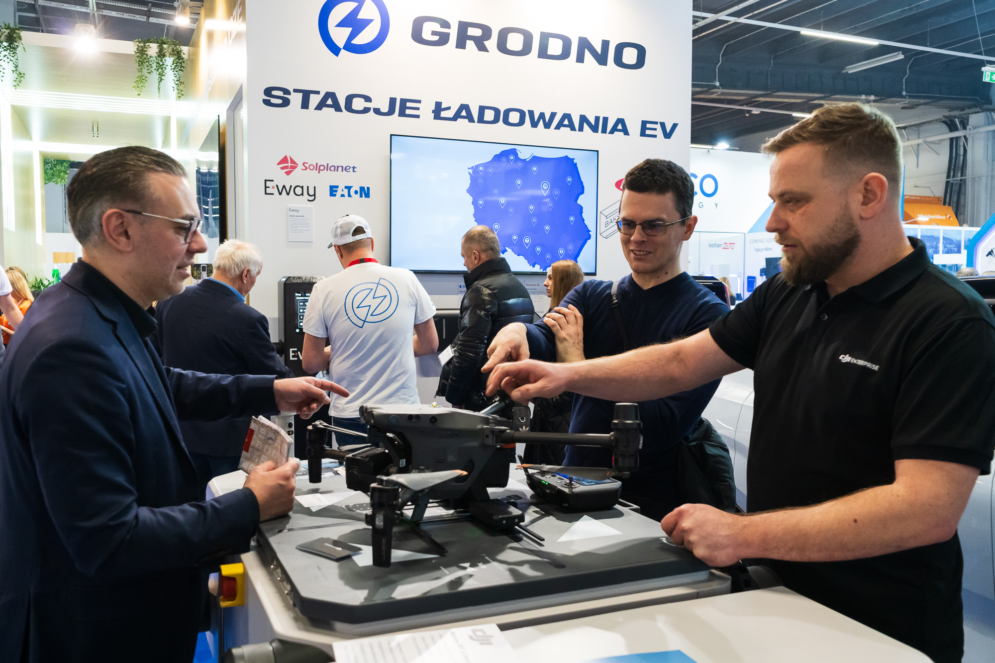 Wrażenie na odwiedzających zrobił też premierowy pokaz nowego falownika hybrydowego i banku energii od Solplanet oraz dronów wykorzystywanych do termowizji od DJI.