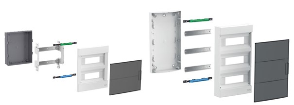 Każda obudowa wyposażona jest w ruchome drzwi w kolorze białym pełnym, lub transparentnym (dymnym), które otwierają się swobodnie do 180°. Ich płaska budowa poprawia integrację przestrzenną, a możliwość montażu zarówno po lewej, jak i prawej stronie, ułatwia umiejscowienie rozdzielnicy nawet w małych i trudno dostępnych miejscach.